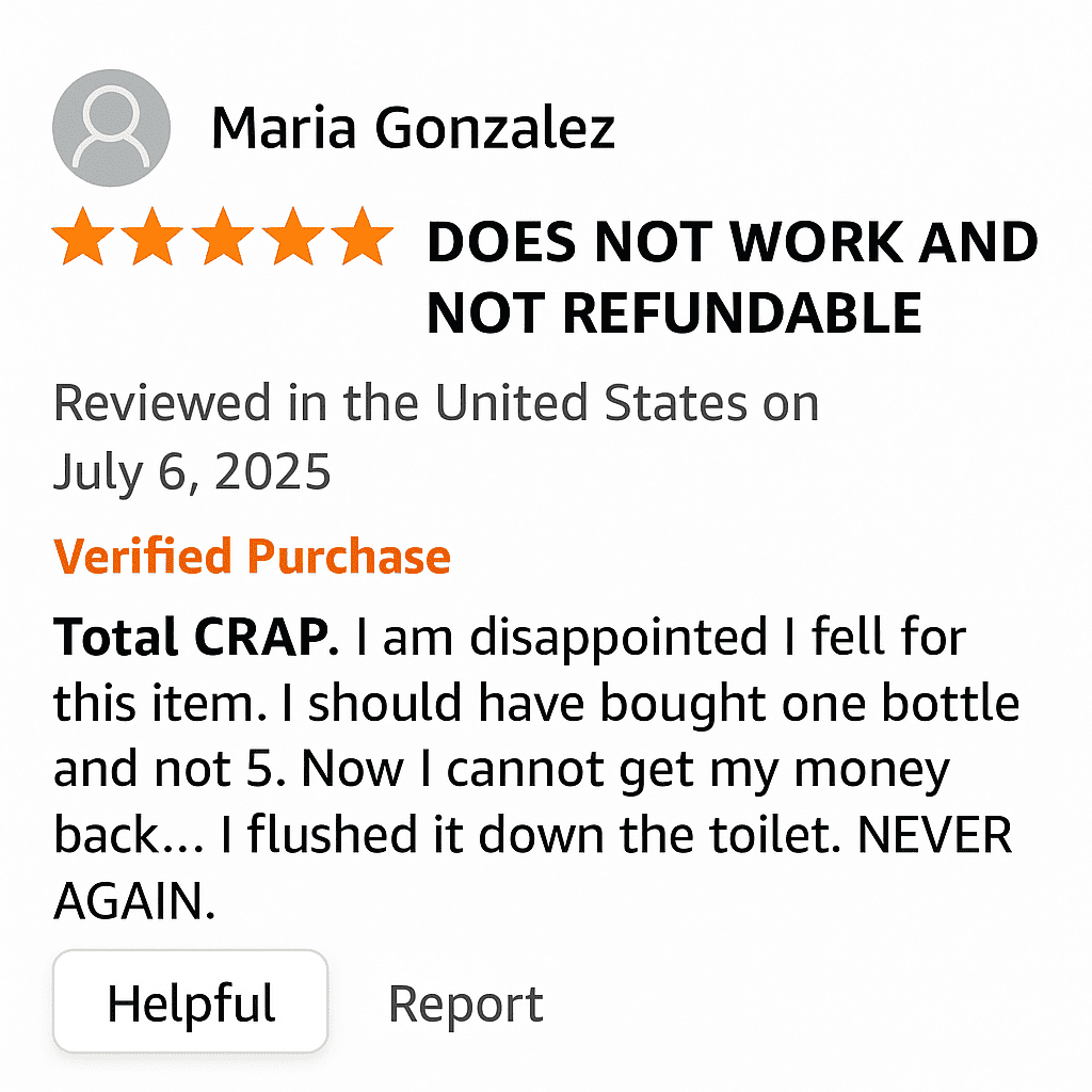 Our team uncovered numerous alarming complaints from individuals who ordered what they believed to be Ignitra™ through third-party websites like Amazon, eBay, or even Walmart. These customers reported receiving counterfeit bottles with altered or completely different ingredients — products that were not only ineffective but also carried potential health risks.